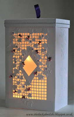 I fancied trying a box that wasn't square and I was going to go completely white on white but then decided to inject a wee bit of colour with the fuchsias.